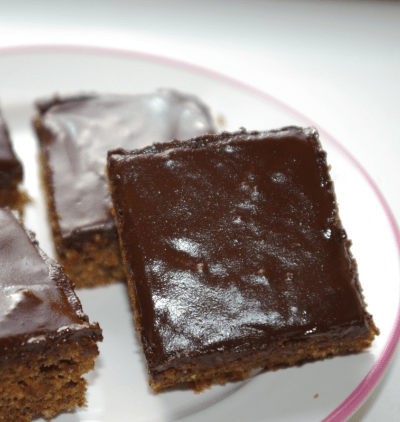 Den Kuchen für etwa 30 Minuten in den Kühlschrank stellen, damit die Glasur fest wird.
